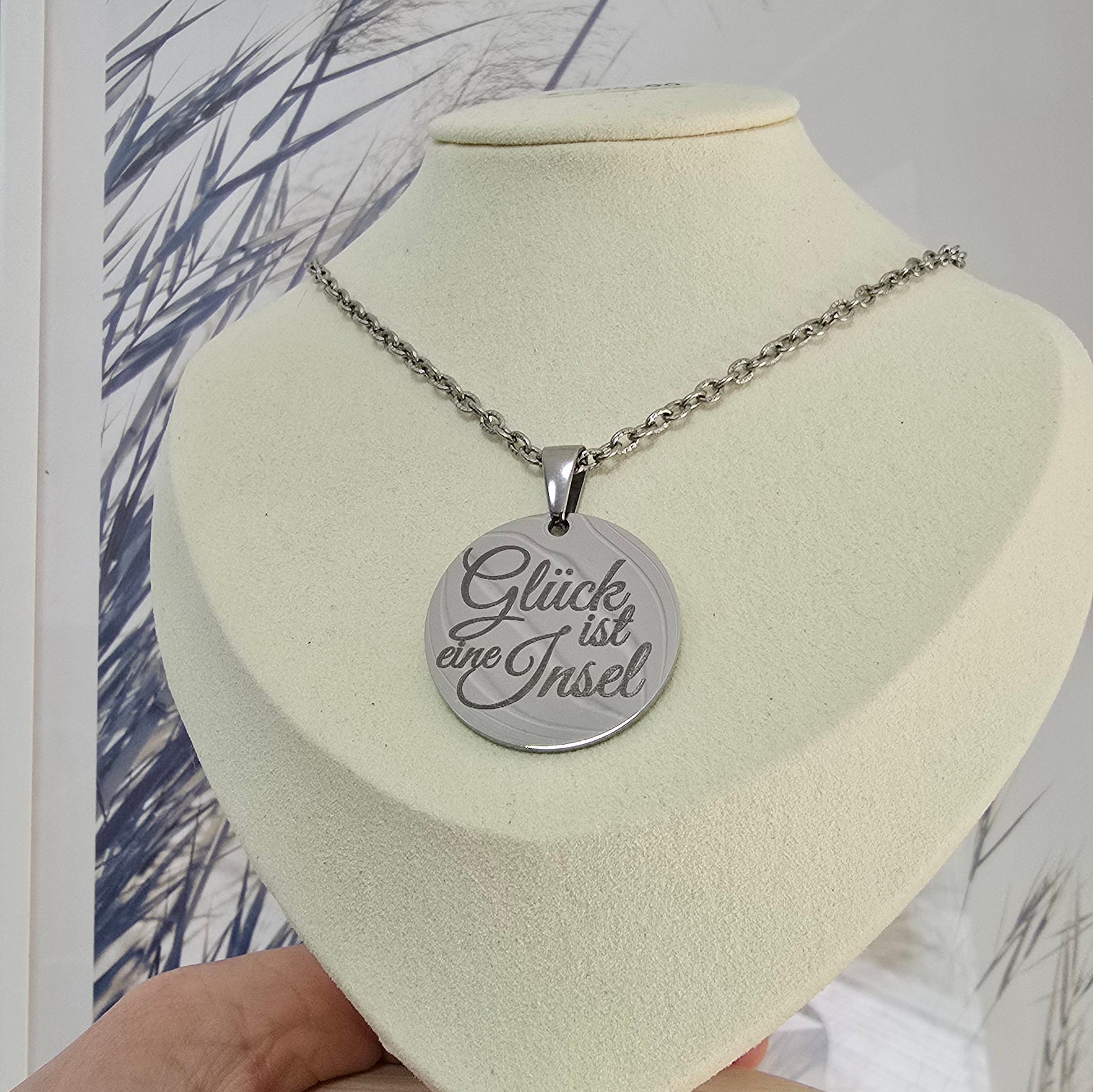 Edelstahlkette Glück ist eine Insel